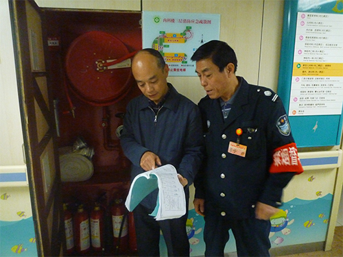 二、排查隱患落實整改。院主要領(lǐng)導(dǎo)帶隊開展安全生產(chǎn)(消防)大檢查,分管領(lǐng)導(dǎo)組織相關(guān)職能科室負(fù)責(zé)人、消防維保人員及保安公司負(fù)責(zé)人開展隱患排查整改,保障醫(yī)院設(shè)施、設(shè)備安全。