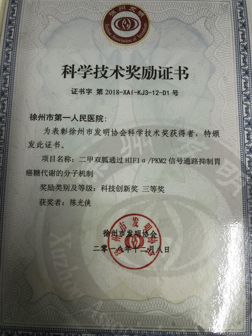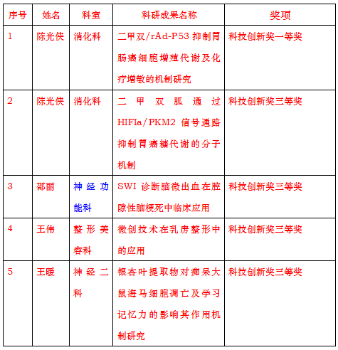 市一院2018年市發(fā)明協(xié)會(huì)科學(xué)技術(shù)獎(jiǎng)獲獎(jiǎng)名單