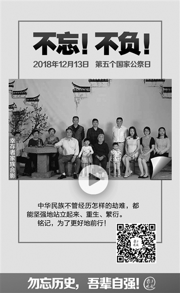 紀念館方介紹,盡管時光不可扭轉(zhuǎn),證人都在老去,但老人們“爭分奪秒”做了件有意義的事,30位南京大屠殺幸存者應邀拍下了他們的全家福,于是便有了這個以“重生·繁衍”為主題的南京大屠殺幸存者家族影像展。揚子官微團隊正是從這些堅韌不屈、涅槃重生的幸存者們的身上,切切實實感受到生命的頑強力量,并衍生出今年公祭日官微特別策劃的主題——不忘!不負!銘記,是為了更好地前行!
