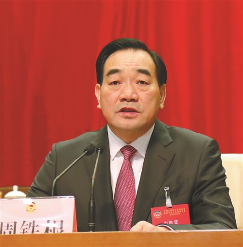 市委書記周鐵根在政協(xié)開幕式上講話。