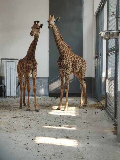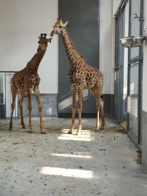 徐州彭祖園動(dòng)物園里的兩只南非長頸鹿,一雌一雄,十分可愛,屬于亞成體,年齡2-3歲。這一對(duì)長頸鹿,是2018年12月,跨越千山萬水,從非洲直接引進(jìn),過了隔離檢驗(yàn)期后,來到了徐州彭祖園動(dòng)物園的。
