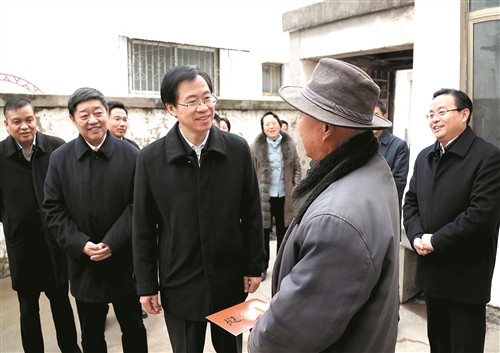 莊兆林等領(lǐng)導(dǎo)深入銅山區(qū)棠張鎮(zhèn)看望慰問(wèn)部分困難群眾和老黨員。 本報(bào)全媒體記者 徐劍 攝