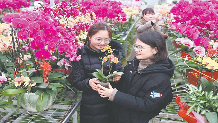 過年期間,市民在合肥市蜀山區(qū)南崗鎮(zhèn)花卉基地選購蝴蝶蘭,用鮮花裝扮新春佳節(jié)。本報(bào)記者 范柏文 攝