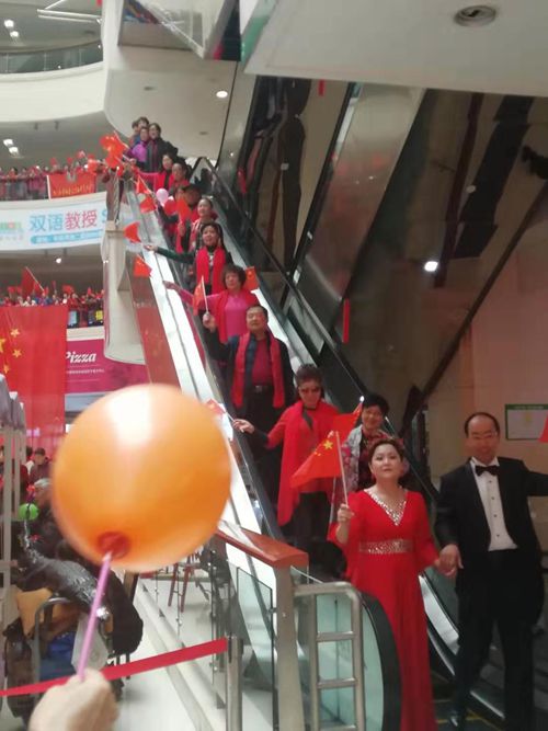 會(huì)場(chǎng)一樓到三樓的觀景圍欄邊,參加活動(dòng)的知青朋友揮舞著手中的國旗,高唱著《我愛你中國》激動(dòng)萬分、熱淚盈眶。各樓層長(zhǎng)長(zhǎng)的滾梯上,大家手拉手,舞動(dòng)國旗,隨著會(huì)場(chǎng)歌頌祖國的歌曲,緩緩而下,頓時(shí)廣場(chǎng)大廳氣氛熱烈。全場(chǎng)一千多人揮舞國旗,共唱《我愛你中國》,場(chǎng)面熱烈感人,大家沉寢在歡樂的海洋中。