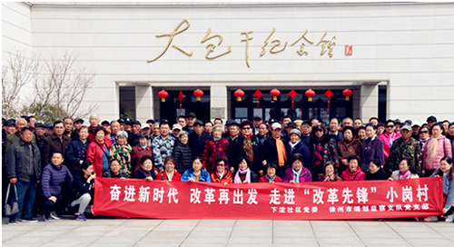 2019323日,徐州下淀社區(qū)黨委與黨建共建單位、徐州市規(guī)劃監(jiān)察支隊(duì)黨支部共200名黨員共同走進(jìn)中國“改革先鋒”小崗村。這是下淀社區(qū)黨委利用20182019年度黨員冬訓(xùn)與區(qū)域化黨建活動(dòng)日,參觀小崗村大包干紀(jì)念館和沈浩陳列館,學(xué)習(xí)沈浩同志無私奉獻(xiàn)發(fā)展小崗村的先進(jìn)事跡和小崗村人民敢為天下先改革創(chuàng)新精神。