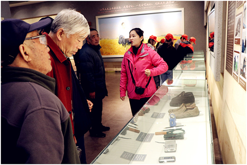 在小崗村的大包干紀(jì)念館,大家聽取了導(dǎo)游的介紹,仔細(xì)觀看了“抉擇”、“追夢(mèng)”、“關(guān)愛”三個(gè)層區(qū)圖片以及十八顆紅手印。