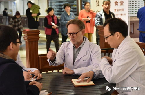 坐在門診樓與住院樓之間的休憩區(qū),Philippe教授繼續(xù)與朱輝主任交流東西方醫(yī)療差異。