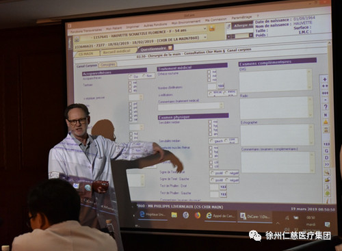 19日下午,Philippe教授給仁慈醫(yī)院手外科團(tuán)隊(duì)分享斯特拉斯堡大學(xué)醫(yī)院院辦系統(tǒng)。