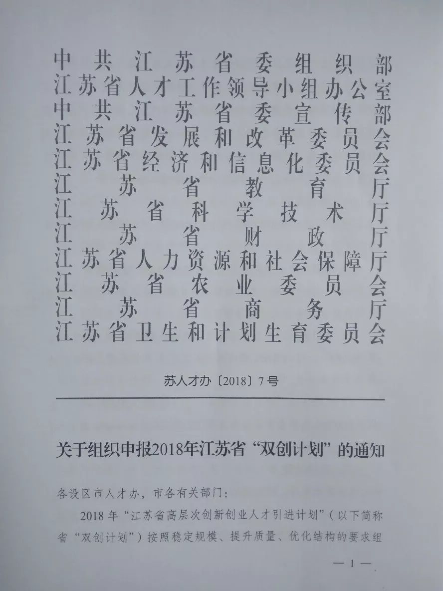 “江蘇省高層次創(chuàng)新創(chuàng)業(yè)人才引進計劃”(簡稱省“雙創(chuàng)計劃”),2018 年申報遴選程序按照《“江蘇省高層次創(chuàng)新創(chuàng)業(yè)人才引進計劃”改革實施辦法》執(zhí)行。申報項目類別包括雙創(chuàng)人才、雙創(chuàng)團隊和雙創(chuàng)博士三個項目。按照穩(wěn)定規(guī)模、提升質(zhì)量、優(yōu)化結(jié)構(gòu)的要求組織實施,進一步突出創(chuàng)新創(chuàng)業(yè)成效、用人單位給予薪酬、社會投資和地方政府配套支持(高新技術(shù)企業(yè))。重點支持新一代信息技術(shù)產(chǎn)業(yè)、高端軟件和信息服務(wù)業(yè)、生物技術(shù)和新醫(yī)藥產(chǎn)業(yè)、新材料產(chǎn)業(yè)、高端裝備制造產(chǎn)業(yè)、節(jié)能環(huán)保產(chǎn)業(yè)、新能源和能源互聯(lián)網(wǎng)產(chǎn)業(yè)、新能源汽車產(chǎn)業(yè)、空天海洋裝備產(chǎn)業(yè)、數(shù)字創(chuàng)意產(chǎn)業(yè)等十大戰(zhàn)略性新興產(chǎn)業(yè)領(lǐng)域引進人才。