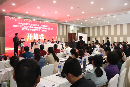 5月18日,“國(guó)醫(yī)大師孫光榮徐州傳承工作室”落戶徐州市中醫(yī)院,徐州市副市長(zhǎng)李燕、江蘇省衛(wèi)健委副主任、省中醫(yī)藥局局長(zhǎng)朱岷、徐州市衛(wèi)健委主任吳憲、徐州市中醫(yī)院院長(zhǎng)范從海、黨委書記劉峰出席揭牌儀式,來(lái)自淮海經(jīng)濟(jì)區(qū)近400名專家學(xué)者到現(xiàn)場(chǎng)觀禮,徐州市中醫(yī)院副院長(zhǎng)牛勇主持。