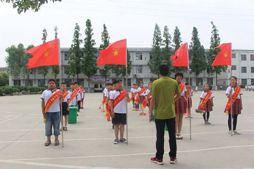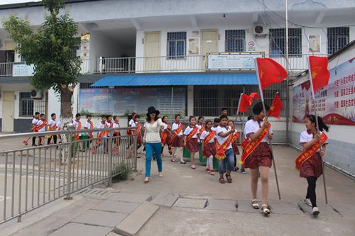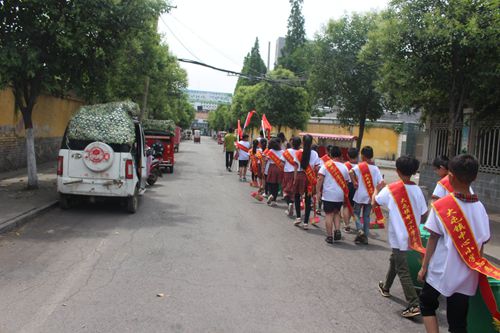5月28日上午,大屯鎮(zhèn)中心小學(xué)志愿者們?cè)趶埿l(wèi)東主任和少先大隊(duì)輔導(dǎo)員劉洪影的帶領(lǐng)下整裝待發(fā)。