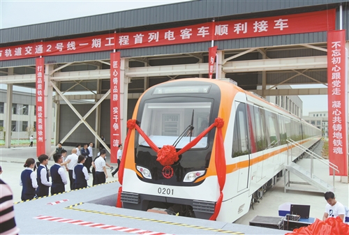 徐州日報訊(全媒體記者 楊旭東)5月28日,在徐州軌道交通新區(qū)東車輛段,徐州市城市軌道交通2號線一期工程舉行首列電客車接車儀式。上午9點40分,隨著“紅蓋頭”的揭開,列車外觀以橙黃色為線路色的2號線電客車正式亮相,標志著2號線一期工程距離正式通車運營又近了一步。