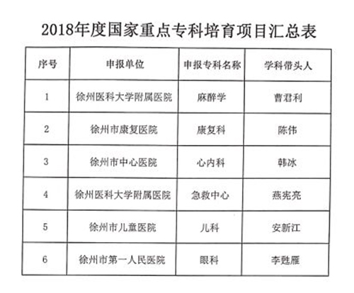 徐州市第一人民醫(yī)院5個(gè)項(xiàng)目獲批“2018年醫(yī)學(xué)重點(diǎn)專(zhuān)科建設(shè)和高層次人才引進(jìn)培養(yǎng)項(xiàng)目”