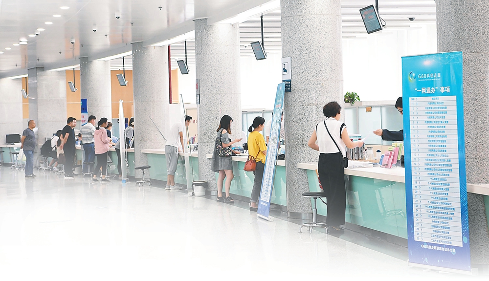 6月26日,在合肥市政務(wù)服務(wù)中心,市民正在長(zhǎng)三角“一網(wǎng)通辦”窗口辦理企業(yè)登記注冊(cè)手續(xù)。 記者 吳文兵 攝