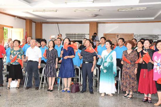 社區(qū)黨委書記董長惠在熱情洋溢的致辭之后,指揮全場大合唱《走向復興》。
