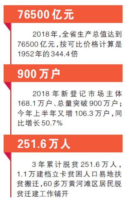 “新中國成立70年來,在黨中央堅強領(lǐng)導(dǎo)下,山東始終與時代同步、與祖國同行,經(jīng)濟社會發(fā)展發(fā)生了天翻地覆的變化。”劉家義介紹說,2018年,全省生產(chǎn)總值達到76500億元,按可比價格計算是1952年的344.4倍;山東以占全國1.6%的土地,創(chuàng)造了全國8.5%的經(jīng)濟總量、9.5%的工業(yè)增加值和8.3%的農(nóng)業(yè)產(chǎn)值。
