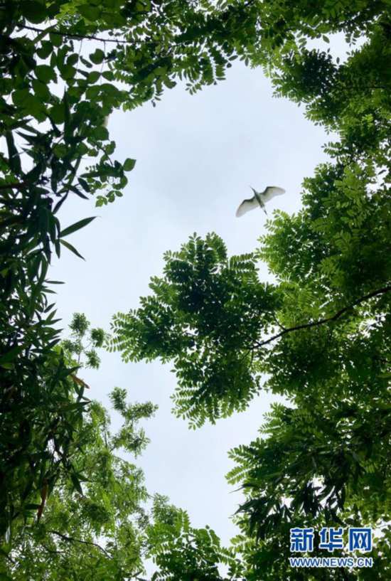 2019年6月26日,在位于江蘇鹽城東部沿海的大豐麋鹿國家級自然保護區(qū),一只白鷺飛過樹梢。7月5日,第43屆聯(lián)合國教科文組織世界遺產委員會會議(世界遺產大會)在阿塞拜疆巴庫舉行,會議審議通過將中國黃(渤)海候鳥棲息地(第一期)列入世界自然遺產名錄。該項目成為中國第54處世界遺產。新華社記者 李響 攝