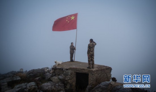 2017年1月1日,王繼才夫婦在開山島的最東邊舉行向國旗敬禮儀式。新華社記者 李響 攝