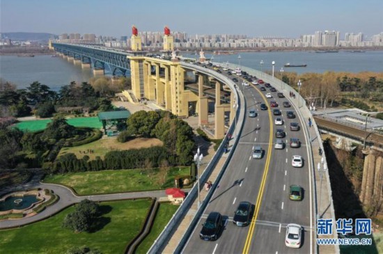 2018年12月29日,車輛行駛在南京長江大橋上(無人機拍攝)。當日,歷經26個月封閉維修的南京長江大橋公路橋恢復通車。 新華社記者李博攝