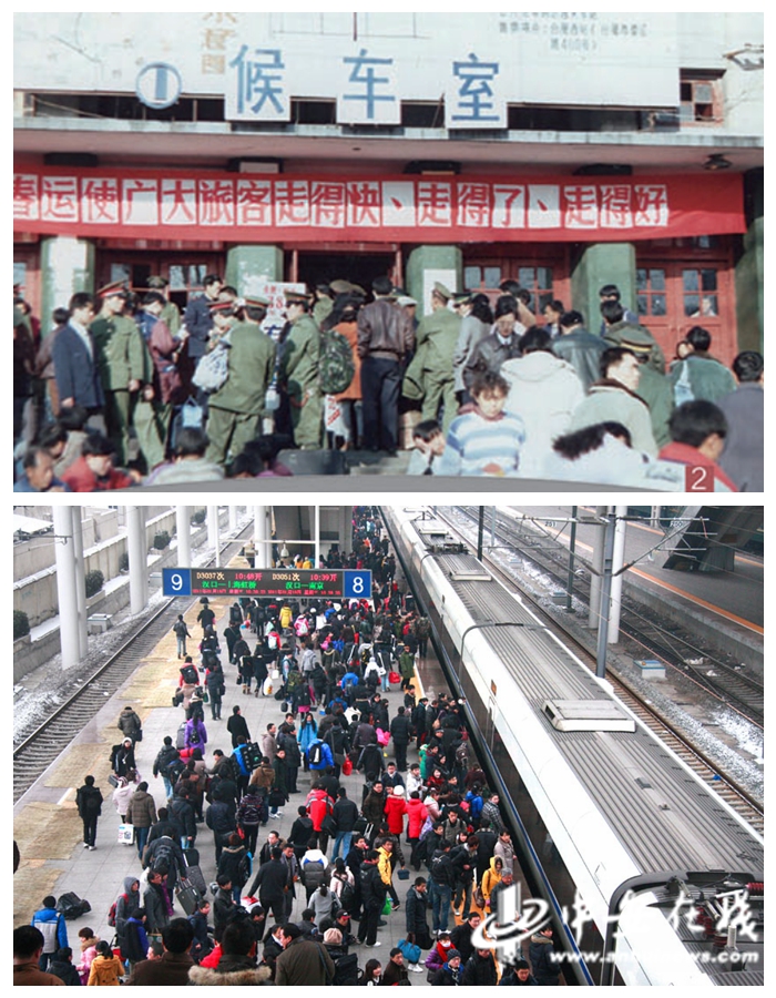 上圖:合肥站改建前的春運場景。下圖:合肥火車站,2011年春運正式啟動。