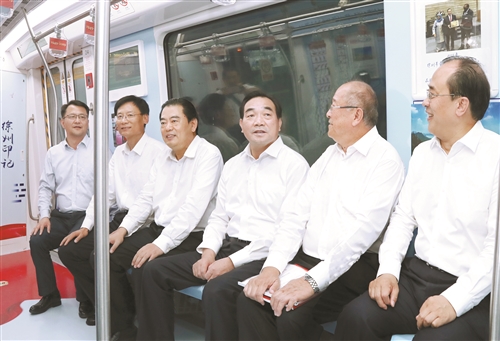 周鐵根、王安順等領(lǐng)導(dǎo)嘉賓出席軌道交通1號線正式開通儀式并乘坐地鐵前往徐州東站站。