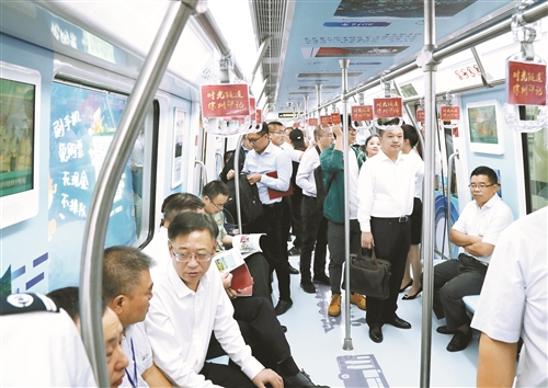 儀式結(jié)束后,周鐵根等領(lǐng)導(dǎo)與廣大市民一起乘坐“時光隧道·徐州印記”主題列車從喬家湖站前往徐州東站站,詳細(xì)了解軌道交通1號線管理運營情況,親身感受地鐵出行的高效、便捷和舒適。