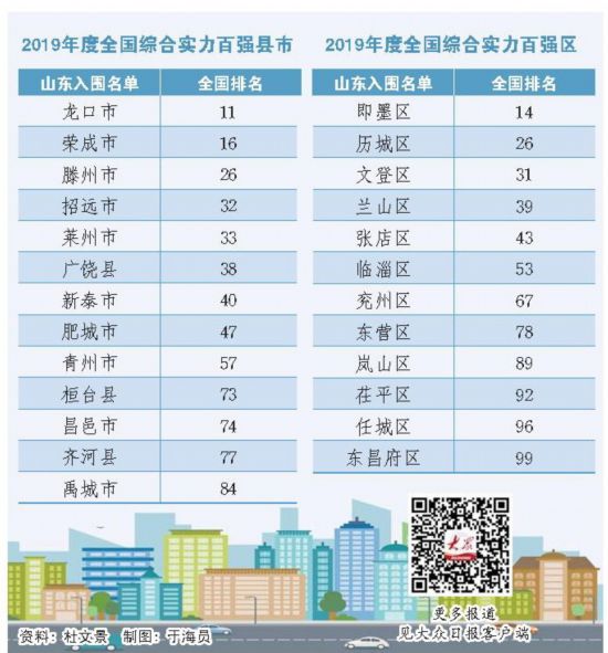 在全國綜合實(shí)力百強(qiáng)縣市排名中,山東共有13個縣市入選,總數(shù)居全國第三;在全國綜合實(shí)力百強(qiáng)區(qū)名單中,青島市即墨區(qū)等12個區(qū)進(jìn)入百強(qiáng)名單;龍口市、榮成市等14個縣市入選全國綠色發(fā)展百強(qiáng)縣市;肥城市、齊河縣等10個縣市入選全國投資潛力百強(qiáng)縣市;招遠(yuǎn)市、青州市等15個縣市入選全國科技創(chuàng)新百強(qiáng)縣市。