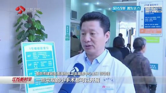 南京市建鄴區(qū)南湖社區(qū)衛(wèi)生服務(wù)中心主任符岱佳:我們有兩個(gè)手術(shù)室,一些常規(guī)的小手術(shù)都可以開(kāi)展,闌尾、疝氣等。我們也引進(jìn)了一些腹腔鏡的手術(shù),包括膽囊的切除也做。去年做了有200多臺(tái)。