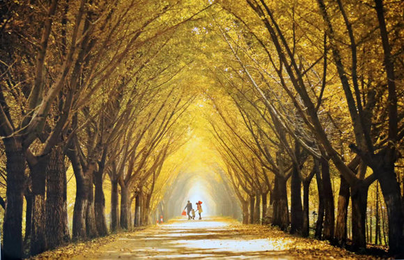 邳州銀杏“時(shí)光隧道”。徐州市委網(wǎng)信辦供圖