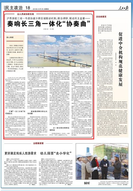 一年多來,隨著聯(lián)動(dòng)機(jī)制的建立,人民政協(xié)協(xié)調(diào)關(guān)系的優(yōu)勢(shì)得到充分激發(fā),長(zhǎng)三角地區(qū)政協(xié)之間的合作形式越來越多、內(nèi)容也越來越豐富,政協(xié)聯(lián)動(dòng)正為這個(gè)區(qū)域的一體化發(fā)展貢獻(xiàn)著新的智慧和力量。