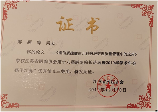 12月14日,江蘇省醫(yī)院協(xié)會第十八屆醫(yī)院院長論壇暨2019年學術(shù)年會于在南京召開,本屆論壇主題為“落實新時代醫(yī)改要求 打造高質(zhì)量發(fā)展品牌”。論壇分設(shè)1個主論壇和4個分論壇,邀請多位知名醫(yī)院管理專家進行講座與交流。徐州市兒童醫(yī)院受邀參加并獲多項殊榮。其中,曹軍華院長被授予2019年度“揚子江杯”分支機構(gòu)優(yōu)秀工作者,護理部蔡盈、郝穎同志分獲優(yōu)秀論文一等獎、三等獎,《我的老婆是護士》獲第五屆江蘇醫(yī)院微電影節(jié)最佳故事片獎。