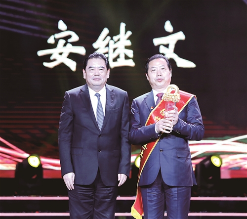 王安順向安繼文頒獎(jiǎng)。
