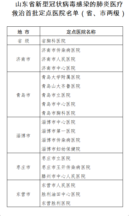 原標(biāo)題:山東發(fā)布新型冠狀病毒感染的肺炎醫(yī)療救治首批定點(diǎn)醫(yī)院