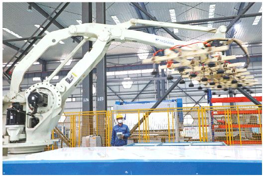 □新華社發(fā) 2月7日,在濱州市博興經(jīng)濟(jì)開發(fā)區(qū),一家建筑鋼品公司員工加緊生產(chǎn)凈化板材。
