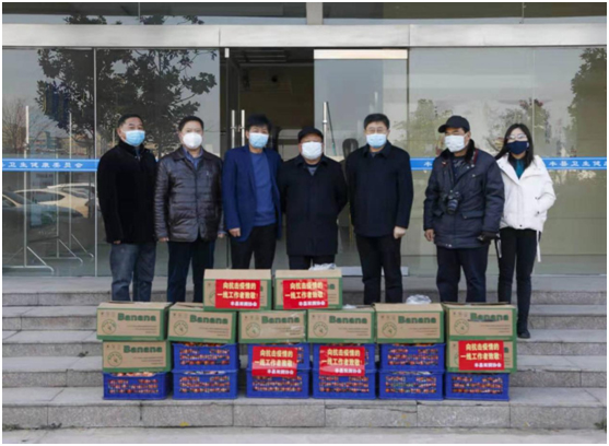 豐縣擁軍優(yōu)屬協(xié)會(huì)主席劉永清帶領(lǐng)協(xié)會(huì)的其他成員到豐縣抗擊新型冠狀病毒肺炎指揮部、豐縣華山卡口檢查站進(jìn)行走訪慰問,贈(zèng)送蜜橘、香蕉各10筐,方便面、火腿腸各50箱,以及核桃奶20箱等價(jià)值1萬(wàn)元的物資,為當(dāng)?shù)乜箵粢咔槌隽艘环萘Α?高聰)