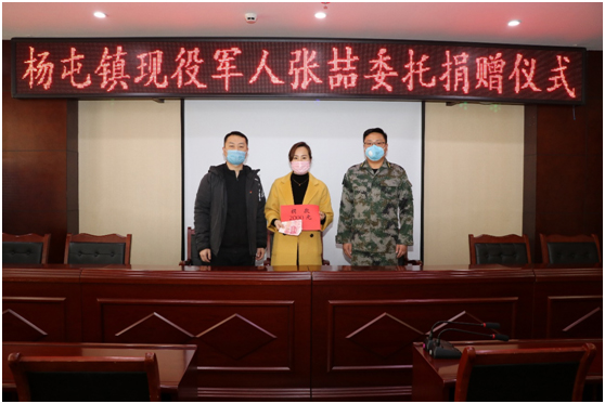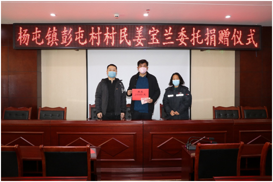 2月9日上午10時(shí)許,在沛縣楊屯鎮(zhèn)政府6樓會(huì)議室,一老一少新兵老兵先后委托親人進(jìn)行愛心捐贈(zèng),唱響了一曲“愛的奉獻(xiàn)”之歌。楊屯鎮(zhèn)彭官屯村的姜龍介紹說,他的姑姑叫姜寶蘭今年73歲,是一位老退伍女兵。1969年老人離開家鄉(xiāng)去新疆參軍,轉(zhuǎn)業(yè)后,她先后被分配到湖南株洲的民政和教育部門工作,退休后,創(chuàng)辦了一所民辦學(xué)校,前些年又投資在家鄉(xiāng)辦起新型建筑材料廠。近段時(shí)期的新冠肺炎疫情,更是讓老人牽腸掛肚。當(dāng)老人了解到,家鄉(xiāng)上下正在按上級(jí)的周密部署有條不紊地狙擊疫情時(shí),感到很是欣慰。老人家為了表達(dá)心意,拿出4萬(wàn)元,委托侄子分別捐給鎮(zhèn)政府和彭官屯村委會(huì),充分表達(dá)了一位老退伍女兵的博大情懷。