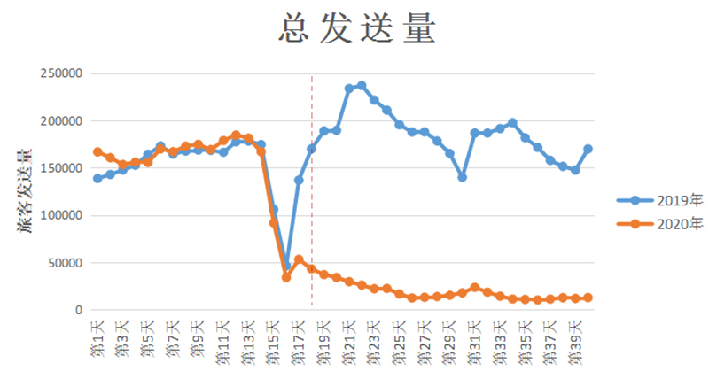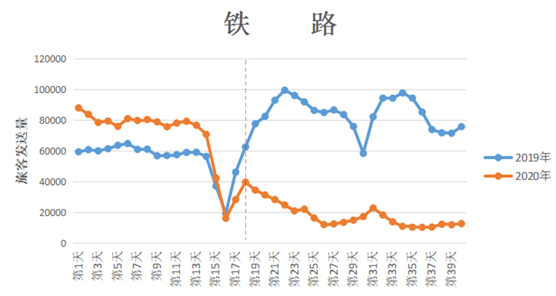 徐州普速站:2020年春運第1-40天發(fā)送人61.1萬人,日均1.6萬人,比去年春運同期減少75萬人,降幅53.2%。降幅最大的日期為2月11、12日、13日,分別下降90.9%、93.2%、92.2%。徐州東高鐵站:2020年春運第1-40天發(fā)送人80.4萬人,日均2.1萬人,比去年春運同期減少44.1萬人,降幅33.3%。降幅最大的日期為2月12、13日、14日,分別下降86.2%、87.4%、84.3%。今年臨客共開行159列,較去年308列下降了48.4%。