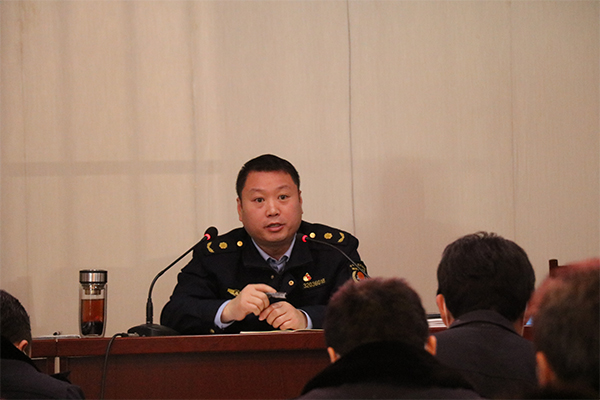 法制科科長謝淼對執(zhí)法過程中遇到的常見問題進行案例分析教學培訓。