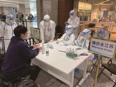3月6日,協(xié)調(diào)組組建駐昆山和上海工作組,負(fù)責(zé)轉(zhuǎn)運(yùn)由上海入境赴蘇人員的接收轉(zhuǎn)運(yùn)工作;11日,組建駐北京工作組,負(fù)責(zé)轉(zhuǎn)運(yùn)由北京入境赴蘇人員的接收轉(zhuǎn)運(yùn)工作;13日,組建南京祿口機(jī)場(chǎng)工作組,嚴(yán)格把好省內(nèi)口岸入境關(guān);14日,成立駐廣東工作組,負(fù)責(zé)自廣州、深圳口岸入境赴蘇旅客的銜接工作。疫情輸入防控形勢(shì)日益嚴(yán)峻,由外辦、公安、交通、衛(wèi)健等部門組成的工作組奮戰(zhàn)在入境口岸一線,形成涉外疫情防控的強(qiáng)大合力。