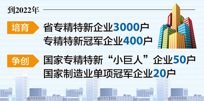 近日,省政府辦公廳印發(fā)《關(guān)于進(jìn)一步發(fā)揮專精特新排頭兵作用促進(jìn)中小企業(yè)高質(zhì)量發(fā)展的實(shí)施意見》提出,到2022年,培育省專精特新企業(yè)3000戶、專精特新冠軍企業(yè)400戶,爭(zhēng)創(chuàng)國(guó)家專精特新“小巨人”企業(yè)50戶、國(guó)家制造業(yè)單項(xiàng)冠軍企業(yè)20戶,壯大具有持續(xù)創(chuàng)新力和競(jìng)爭(zhēng)力的中小企業(yè)示范群體,成為引領(lǐng)我省中小企業(yè)高質(zhì)量發(fā)展的“排頭兵”。