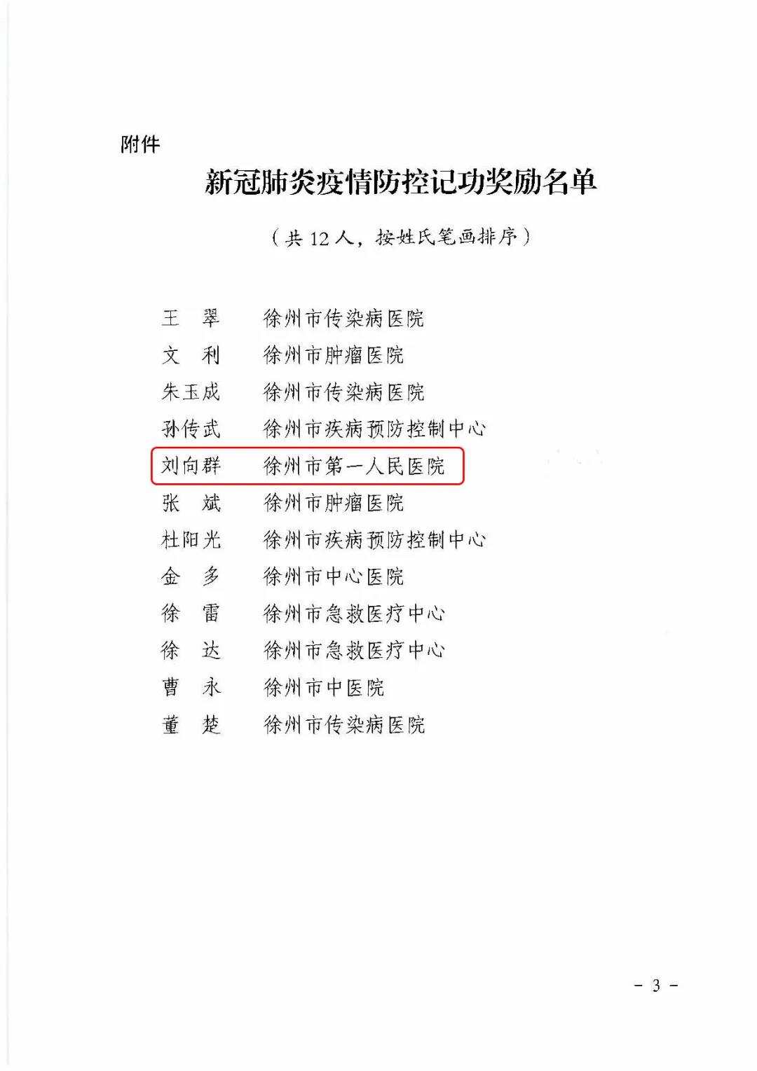 徐州市第一人民醫(yī)院劉向群獲新冠肺炎疫情防控記功獎(jiǎng)勵(lì)