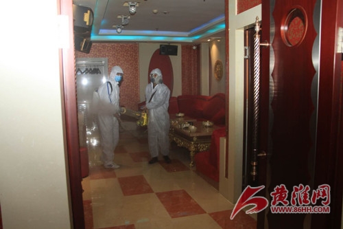 黃淮網(wǎng)(宋梅) 4月25日,淮北市眾幫救援隊(duì)協(xié)助淮北市名仕匯俱樂(lè)部工作人員對(duì)俱樂(lè)部進(jìn)行全面消毒工作。