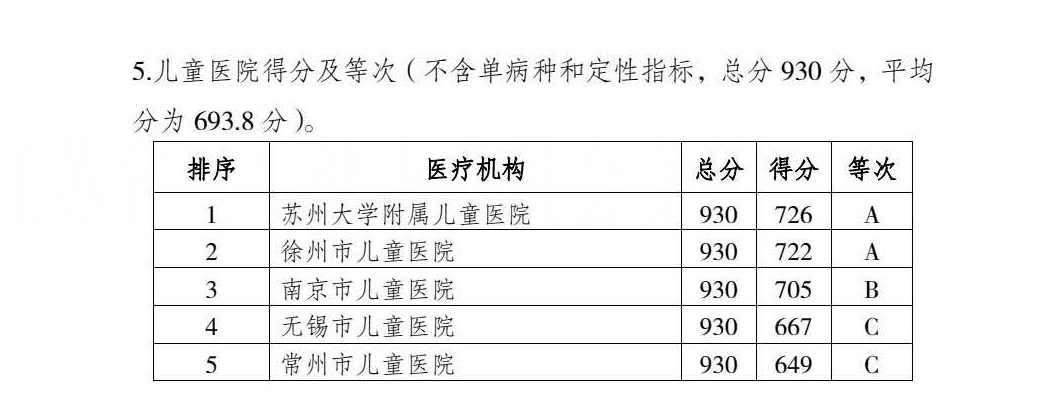 徐州市兒童醫(yī)院以總分722分成績(jī)