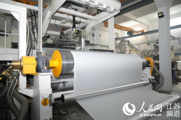 疫情以來,江陰開源非織造布制品有限公司生產(chǎn)的無紡布原料成了不少防護(hù)服企業(yè)的指定原材料。(企業(yè)供圖)