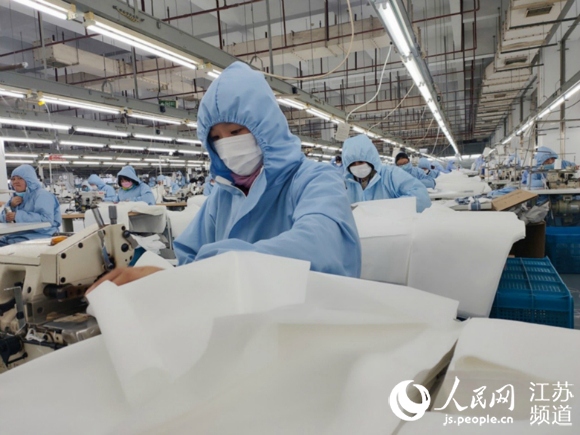 開足馬力72小時,紅豆運動裝公司保質(zhì)保量完成首批4萬件一次性醫(yī)用隔離衣生產(chǎn)任務(wù)。(企業(yè)供圖)