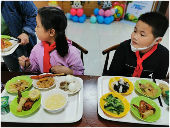 5月30日中午,徐工信息的餐桌上擺滿了水果、甜品和各式各樣的糕點與兒童餐,這些都是為20多名困境兒童精心準備的。街道黨委副書記戴蘇群與愛心企業(yè)姜書記共同為孩子們切分蛋糕,孩子們井然有序地排起了長隊,臉上掛滿了喜悅。餐后,三名兒童代表分別為街道戴書記,愛心企業(yè)張總、姜書記佩戴紅領(lǐng)巾,敬少先隊隊禮,表達對黨和社會關(guān)愛的感激之情。