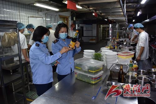 檢查中,執(zhí)法人員根據(jù)《食品安全法》、《食品安全法實施條例》要求,對照《餐飲服務(wù)食品安全操作規(guī)范》,對餐飲單位的許可管理、人員衛(wèi)生、場所衛(wèi)生、設(shè)施設(shè)備、采購與存放、食品添加劑、加工過程、專間管理、餐具消毒、留樣等方面進(jìn)行了全面檢查,并現(xiàn)場抽檢了一個批次的自制涼菜。