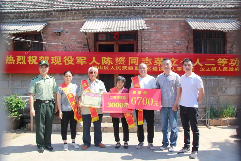 銅山區(qū)相關(guān)負(fù)責(zé)人宣讀了陳赟立功受獎(jiǎng)通知書(shū)并頒發(fā)了立功獎(jiǎng)牌,向陳赟父母贈(zèng)送了慰問(wèn)金,并合影留念。大家對(duì)陳赟在部隊(duì)的出色表現(xiàn)贊不絕口,對(duì)其家人培養(yǎng)了這么優(yōu)秀的兒子深表敬意,是銅山優(yōu)秀青年的楷模和榜樣。