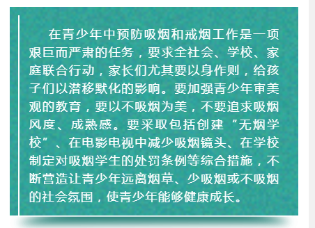 1、影響生長(zhǎng)發(fā)育。青春期少年各器官正處于發(fā)育階段,新陳代謝旺盛,對(duì)有毒物質(zhì)較成人吸收快,吸收后毒物對(duì)身體毒害更深。香煙中的有害物質(zhì),對(duì)呼吸道防御機(jī)制有破壞作用,會(huì)破壞纖毛上皮的正常功能,刺激黏液腺分泌增加,所以常吸煙的人普遍咳嗽,痰多,易患呼吸道感染,有少數(shù)人可出現(xiàn)呼吸短促。吸煙越多,癥狀越重,是呈正比上升。由于青少年組織修復(fù)能力強(qiáng),只要及早戒煙,數(shù)周后通氣功能便會(huì)得到改善,癥狀也會(huì)消失。