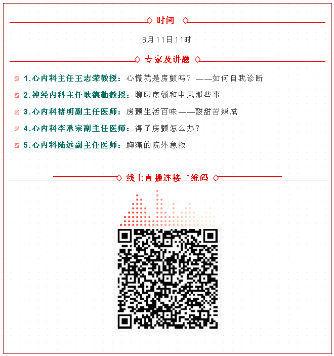 今年6月6日是第八個(gè)“中國(guó)房顫日”主題是“關(guān)注房顫,預(yù)防卒中”。